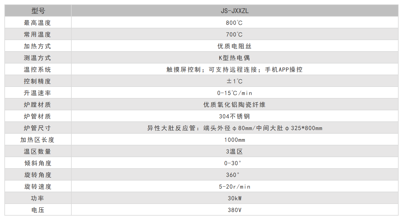 此外,炉体具备0~30°倾角可调功能,可根据工艺需求灵活调整进出料角度,优化物料流动性与操作便捷性。整机结构紧凑,运行稳定,广泛适用于材料合成、催化剂评价、固相反应等科研与中试生产领域。