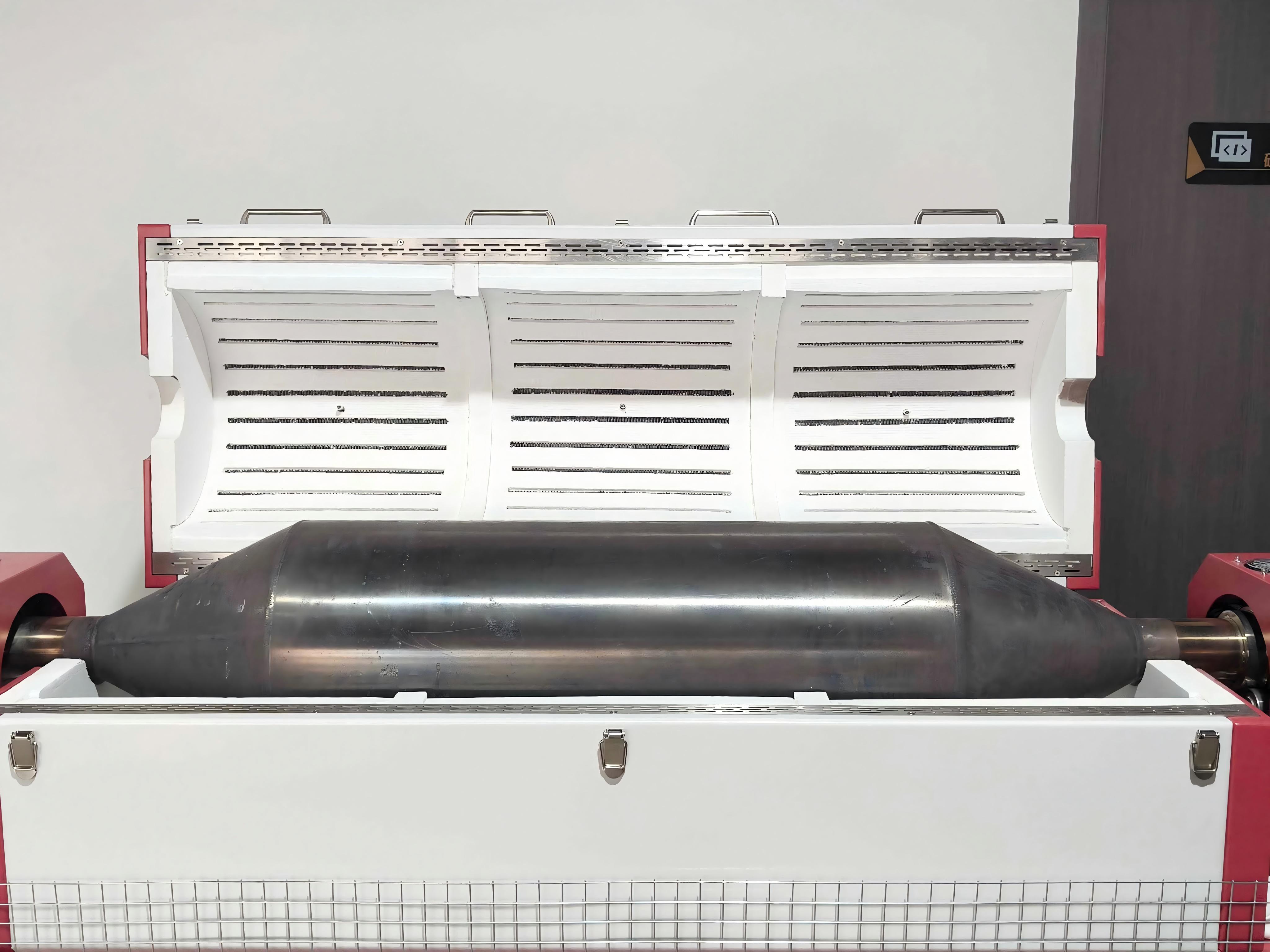 炉体核心采用异性大肚反应管结构,由304不锈钢材质制成,具备良好的耐热性与结构强度,适应复杂工艺条件下的长期使用。反应管支持360°匀速旋转,确保物料在炉内分布均匀、受热一致,显著提升反应效率与产物一致性。